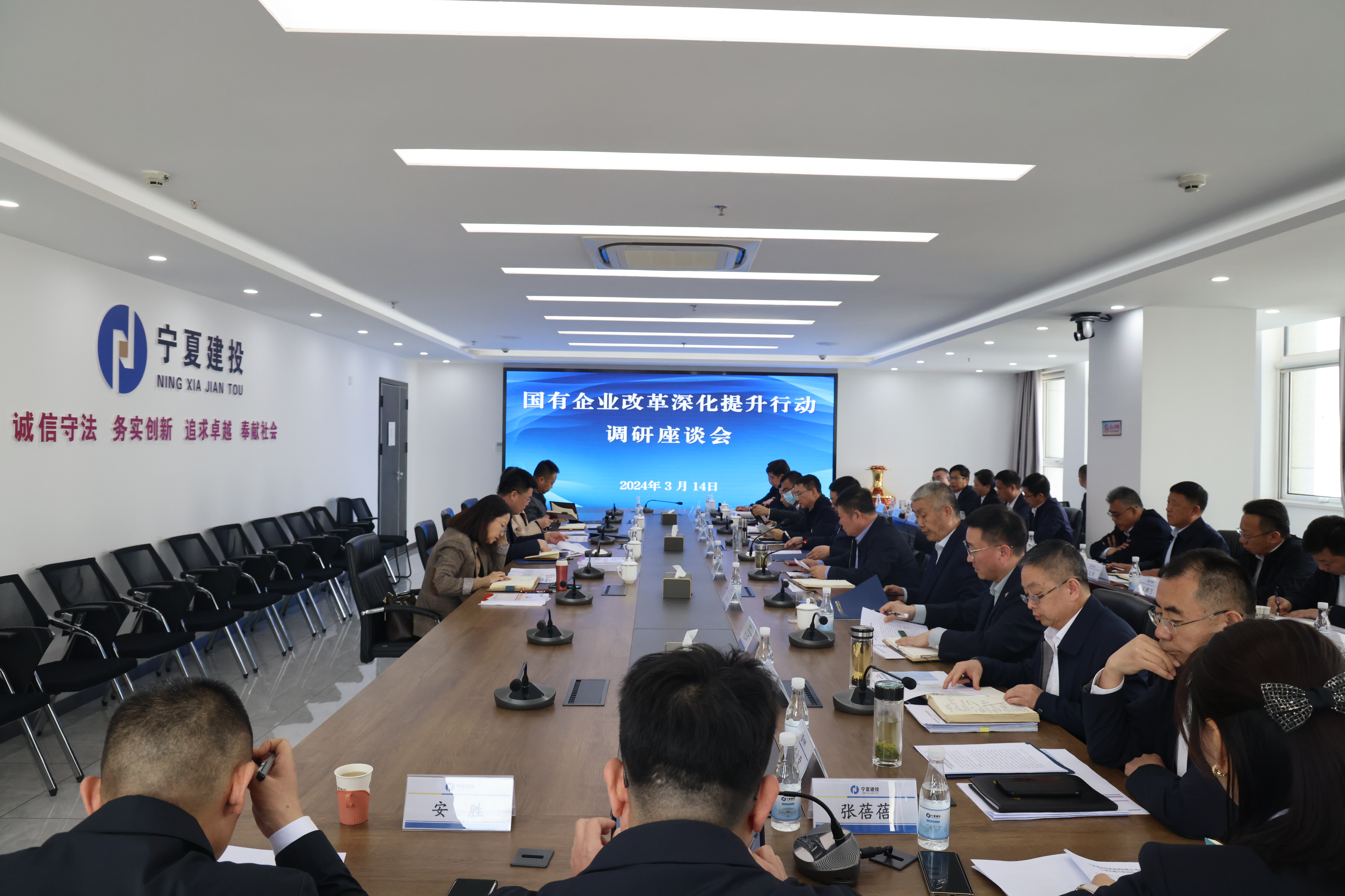 3月14日下午,自治区国资委主任杨刚一行到宁夏建投调研指导企业生产经营、改革深化提升行动等工作。宁夏建投党委书记、董事长华光荣,党委副书记、总经理李志国,宁夏建投外部董事、班子成员及集团公司部门和权属企业负责人参加了调研座谈。